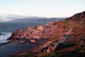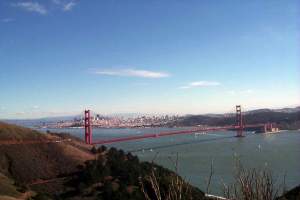 This morning, though, I woke up fully recovered from New Year's Eve. In the early afternoon, my date picked me up and we drove over the Golden Gate Bridge for a drive in the Marin Headlands. We attempted to eat our chicken-caesar- salads-to-go outside on a gun emplacement overlooking the Bay, but it was too cold and windy. At least the skies were clear and the views spectacular.