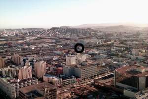 The view towards the South. That black ring is not a Ferris Wheel, but denotes where my apartment is. You can see how close the freeway is!