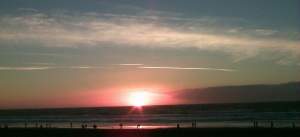Afterwards, he persuaded me to drive right across the city to Ocean Beach to watch the sunset. It was too cold to get out of the car, but it was pretty.