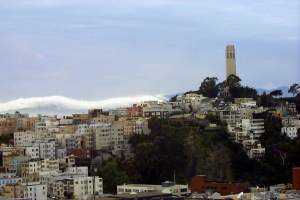 If you look behind Telegraph Hill, you can see the fog rolling across the crest of the hill behind it. Whenever I
