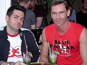 When Jean-Marc returned several hours later, the dreary midday had been transformed into a warm and sunny late afternoon. After rearranging my bags, and a strong cup of coffee, we took the subway to the Hotel de Ville and walked past Notre Dame, then along the Seine, finally to the Marais, Paris' gay-friendly neighborhood - probably my favorite gay neighborhood anywhere. It's very mixed; plenty of pretty boys - but it doesn't feel at all like a ghetto; and lots of nice cafes and restaurants. We sat outside on the sidewalk at a gay bar, and had mojittos just like we did last time I was in Paris, with Jean-Marc and Brett.